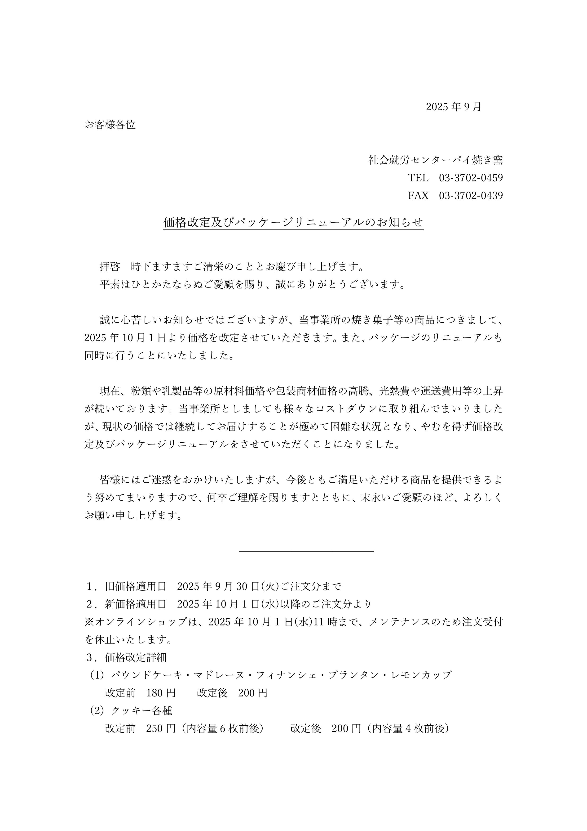 | まずはお気軽にお問い合わせください。 03-3703-0415 または sabo@paiyaki.net 担当:パイ焼き茶房 まで |