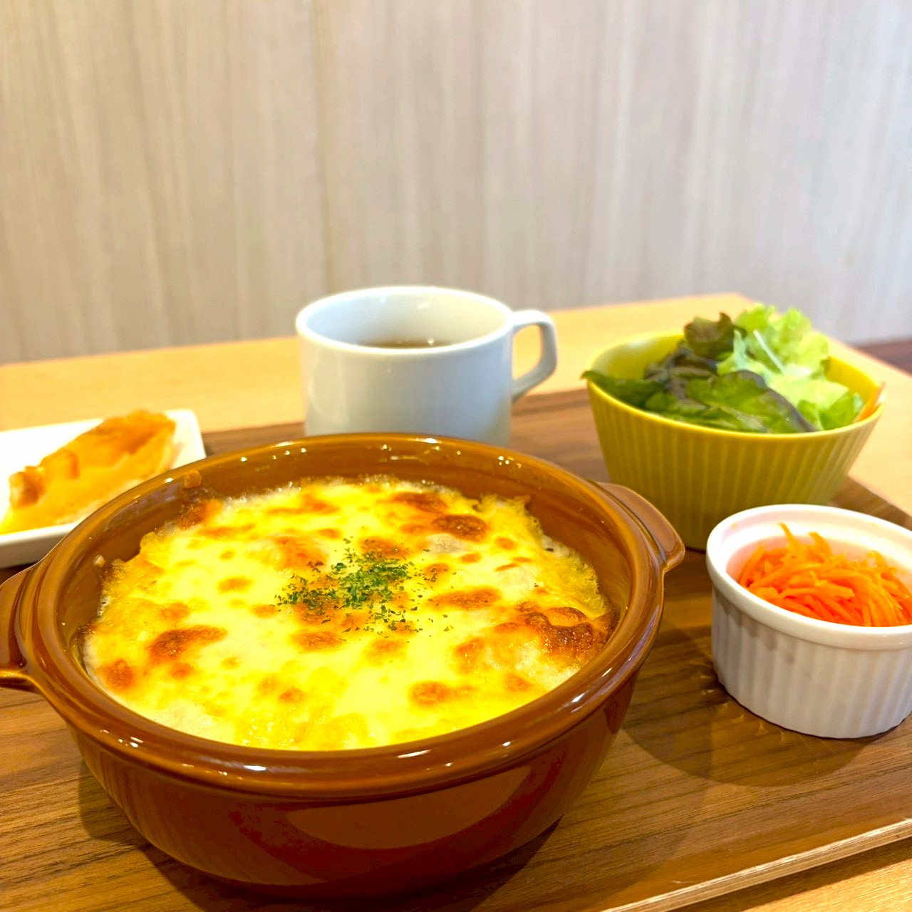 ランチタイム11:00~15:30はサラダ・スープ・プチデザート付きの